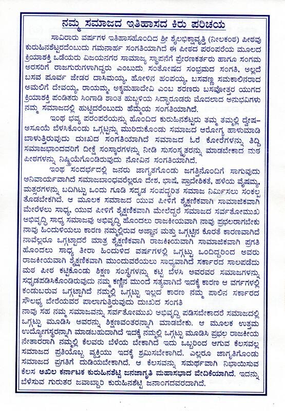This is a FREE, non-profit publishing website exclusively meant for Kuruhina Setty (Shetty) Community (KSC) People. Information related to events at places populated by KSC will be published, on its availability. Also published are information about personalities who have rendered self-less service to the good cause of the KSC and its people, on its availability.